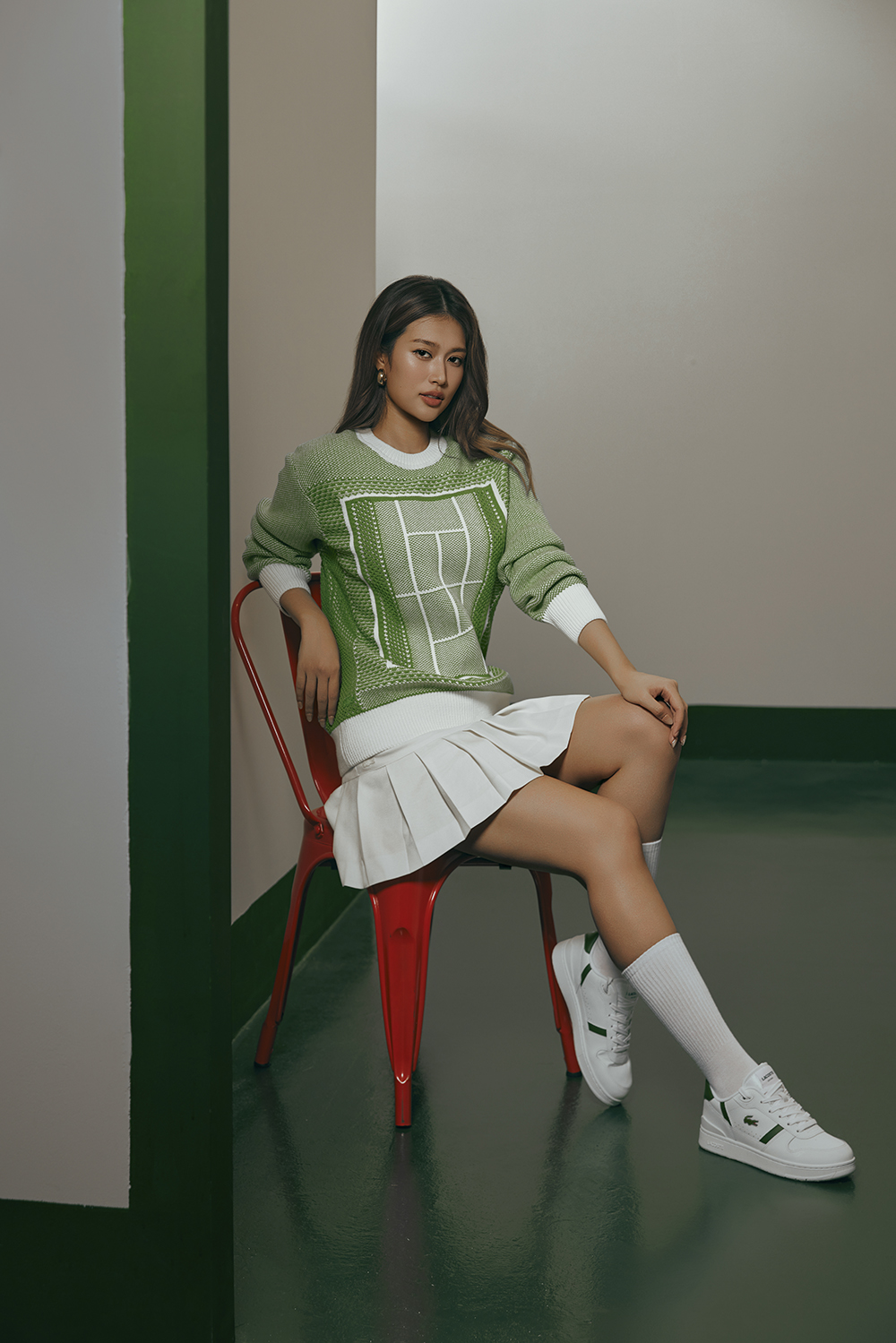 Hành trình diễn xuất của Đoàn Thiên Ân đang được hoàn thiện từng ngày cùng với sự trưởng thành nội tâm, thể hiện qua những vai diễn được công chúng ghi nhận. Ở một lĩnh vực khác, người mẫu Lại Mai Hoa bước đi trên con đường thời trang bằng niềm tin vào trực giác; nhịp điệu của cô được quyết định bằng cảm giác cân bằng. Hai cô gái trẻ trên hành trình theo đuổi hoài bão cá nhân vẫn luôn có những khoảng lặng để soi chiếu thế giới bên trong. Khoảng tĩnh lặng giữa dòng dịch chuyển đó hòa hợp cùng tinh thần của bộ sưu tập Lacoste Xuân Hè 2026 - bộ sưu tập lấy cảm hứng từ không gian riêng tư giàu tính tự sự trong phòng thay đồ ở những câu lạc bộ tennis, nơi mỗi người gỡ bỏ vỏ bọc thường nhật để đối diện với chính mình.