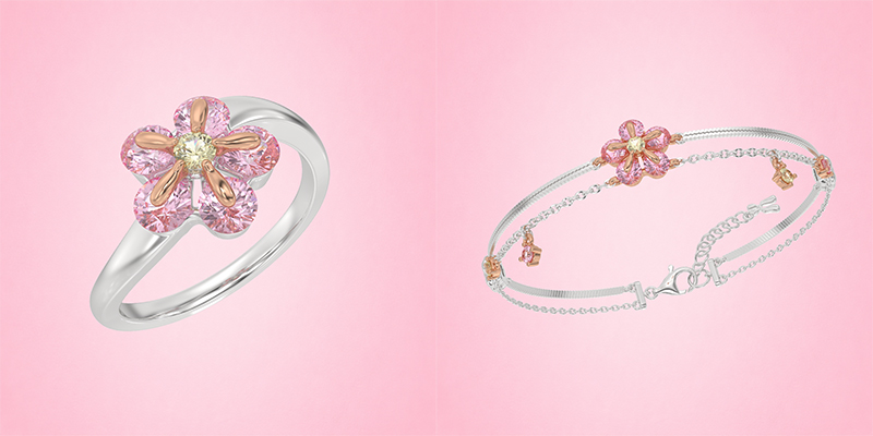 Tinh thần “nở rộ” ấy cũng được thể hiện rõ nét trong ngôn ngữ thiết kế của bộ sưu tập. Lựa chọn hoa và bươm bướm làm hình tượng chủ đạo, Bloomie gửi gắm ý nghĩa biểu trưng cho sự chuyển mình, vận may và những điều tốt đẹp đang chờ đón phía trước. Các đường nét mềm mại, uyển chuyển mô phỏng khoảnh khắc nụ hoa vừa hé, cánh bướm tung bay, kết hợp cùng những viên đá rực rỡ sắc màu, tạo nên tổng thể thanh thoát nhưng vẫn có chiều sâu thị giác. Bên cạnh đó, các thiết kế được điểm xuyết men màu hồng, mang đến cảm giác lấp lánh, trẻ trung và đầy sức sống.