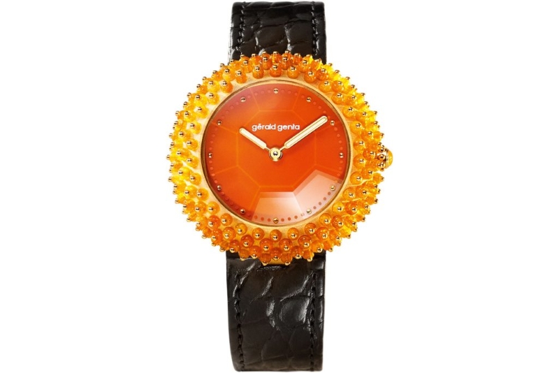 Chiếc Gentissima Oursin Fire Opal gây ấn tượng với mặt số tông lửa nổi bật, được viền bởi 137 viên opal lửa gắn thủ công. Thiết kế tôn vinh màu sắc và nghệ thuật xử lý đá quý, đưa opal lửa – loại đá quý hiếm có nguồn gốc từ dung nham núi lửa Mexico với sắc đỏ, cam và vàng rực rỡ – vào thế giới đồng hồ nữ theo cách táo bạo và tinh tế.