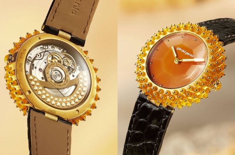 Bên trong lớp vỏ rực rỡ, chiếc Gentissima Oursin Fire Opal sở hữu bộ máy GG-005 Zenith Elite với bánh đà vàng 18K, chế tác bởi hai bậc thầy Michel Navas và Enrico Barbasini từ La Fabrique du Temps. Evelyne Genta, vợ của Gérald Genta, chia sẻ: “Gérald luôn say mê cách đá quý tương tác với ánh sáng. Oursin là một trong những sáng tạo mà ông yêu thích nhất, chỉ được thực hiện với số lượng rất nhỏ dành cho những người thân thiết”.