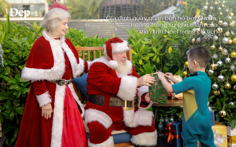 Điều ai nấy cũng háo hức chờ đợi là ngày 24 tháng 12 khi cả gia đình cùng nhau quây quần bên hồ bơi Oasis, ngóng trông sự ghé thăm của gia đình Noel trong cổ tích. Đôi mắt trẻ thơ long lanh niềm vui khi được nắm tay và bế bồng bởi ông già Noel trong bộ đồ đỏ quen thuộc, vừa cưỡi sóng đến chơi, mang theo biết bao nhiêu là quà tặng cho những đứa bé ngoan của ông.