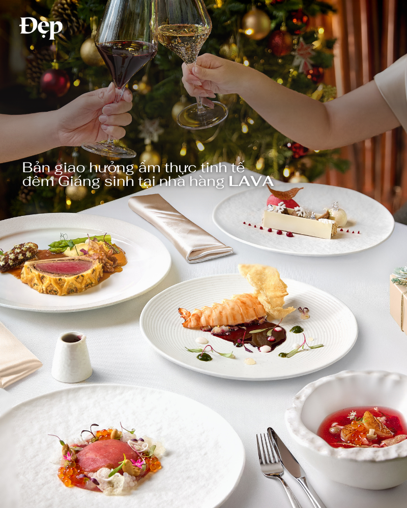 Đêm Giáng Sinh ấm áp và trọn vẹn tại nhà hàng LAVA, với thực đơn đặc biệt hơn bao giờ hết, hứa hẹn một trải nghiệm ẩm thực hiếm có. Dưới ánh đèn vàng, bên những ly rượu thơm sóng sánh, các đầu bếp trình diễn một bản giao hưởng của hương vị. Trong đó, mỗi món ăn là một món quà của biển cả, kiến tạo qua bàn tay sáng tạo của con người, vừa tinh tế vừa đậm đà bản sắc.