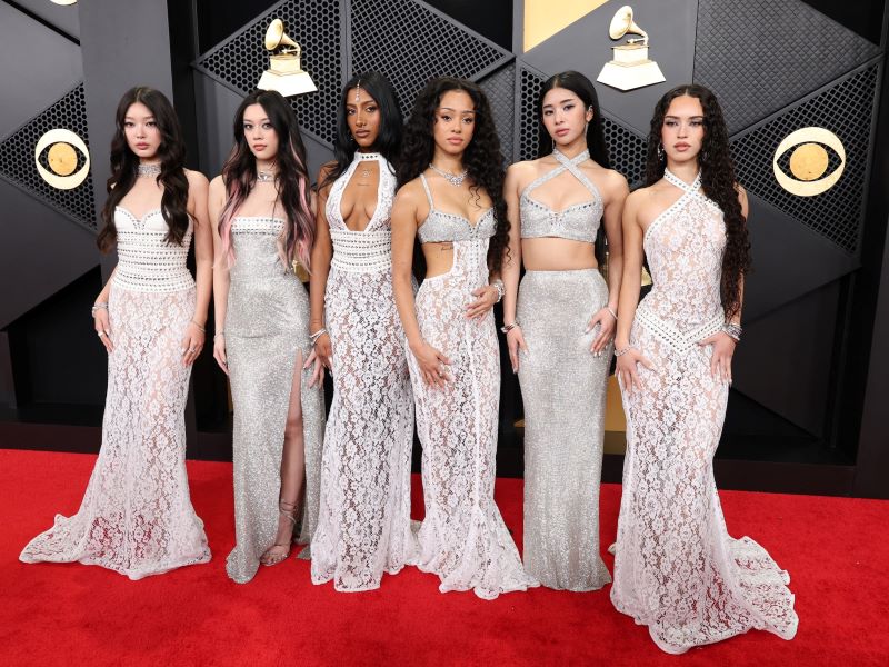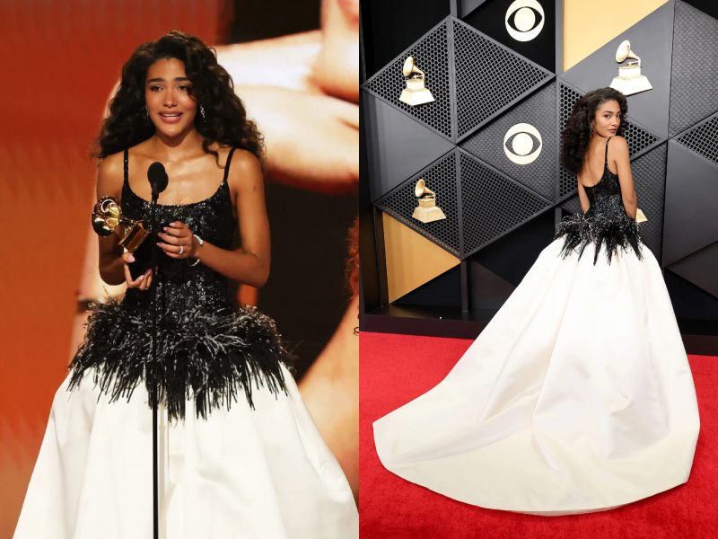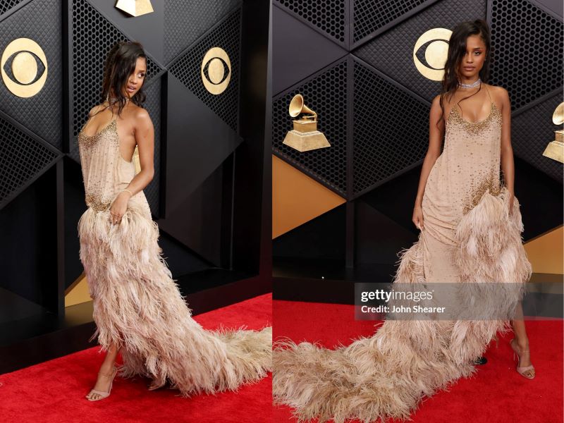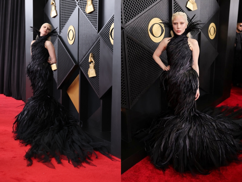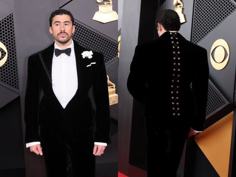 Xuất hiện trên thảm đỏ, Rosé lựa chọn thiết kế may độc quyền của Giambattista Valli. Chiếc đầm màu đen – trắng đặt trọng tâm vào phom dáng cúp ngực, kết hợp phần đuôi váy dài có độ rơi mềm, tạo nên sự đối thoại rõ rệt giữa cấu trúc và chuyển động. Trang sức Sixteen Stone của Tiffany & Co. hoàn thiện “giao diện” sang trọng của giogn5 ca “APT.” trên thảm đỏ.“Mẹ quái vật” Lady Gaga tiếp tục sử dụng thời trang như một cấu trúc biểu đạt mạnh mẽ. Thiết kế đầm từ Matières Fécales phủ kín lông vũ, với cổ yếm và dáng dài.Vợ chồng Justin Bieber và Hailey Bieber thể hiện sự ăn ý qua phong cách all-black đồng điệu. Hailey diện thiết kế đầm đen từ Alaïa với dáng cúp ngực. Đối lập với nét nữ tính của vợ, Justin Bieber chọn bộ suit Balenciaga dáng rộng kết hợp áo phông đen đơn giản.Được đề cử hạng mục “Best Pop Solo Performance” tại Grammy 2026, Chappell Roan xuất hiện trên thảm đỏ với một thiết kế đầm cắt táo bạo của Mugler. Chiếc đầm xuyên thấu được xây dựng trên cấu trúc cơ thể, loại bỏ lớp che phủ truyền thống và thay thế bằng chi tiết khoen kim loại tại phần ngực.Ca sĩ Miley Cyrus xuất hiện tại Grammy 2026 với lựa chọn trang phục dựa trên ngôn ngữ rock quen thuộc. Cô mặc áo khoác da biker đen của Celine, đặt điểm nhấn ở chiếc ghim cài kích thước lớn dạng vòng hoa, đính hai chữ cái “M” và “C”. Bên trong là áo sơ mi trắng và quần tây đen, kết hợp kính mát, thắt lưng đôi và găng tay da.Bad Bunny diện một thiết kế tuxedo đen của Schiaparelli, đánh dấu lần hiếm hoi ngôn ngữ Haute Couture được đưa vào trang phục nam tại sự kiện này. Áo khoác nhung xử lý chi tiết dây đan phía sau lưng tạo cấu trúc corset, đi cùng quần tây cắt gọn và viền áo mang họa tiết thước dây đặc trưng của nhà mốt.Billie Eilish tiếp tục khẳng định vị thế “chiến thần” thời trang bền vững qua thiết kế từ Hodakova. Bộ trang phục là một bản tái cấu trúc từ những chiếc quần tây và thắt lưng cũ thuộc kho lưu trữ. Các chi tiết này được tháo rời và tái lắp ghép thành áo khoác phom “barracuda” đảo chiều, đi cùng chân váy suit đồng bộ.Sabrina Carpenter với 6 đề cử Grammy diện thiết kế đầm trắng xuyên thấu của Valentino. Mẫu đầm mang tên “Man’s Best Friend” lấy cảm hứng từ hoa lá, thể hiện qua phần thân áo đính sequin họa tiết hoa và chi tiết cườm tập trung ở phần ngực.Chủ nhân giải thưởng “Nghệ sĩ mới xuất sắc nhất” Olivia Dean tỏa sáng trên thảm đỏ với chiếc đầm CHANEL và trang sức Cartier.Tyla tái hiện ngôn ngữ thời trang thời đại nhạc Jazz trong thiết kế lưu trữ từ bộ sưu tập Thu Đông 2013 của Dsquared2. Chiếc đầm màu hồng thạch anh với cấu trúc quai mảnh, cổ khoét tròn sâu, tạo trọng tâm vào các chuỗi hạt kim loại rủ dọc thân phối cùng đuôi lông vũ từ hông chạm đất.KATSEYE khép lại danh sách với lựa chọn trang phục mang tính đồng bộ. Các thành viên cùng diện thiết kế của Ludovic de Saint Sernin, xây dựng trên bảng màu trắng với ren, da và lưới pha lê. Phom dáng được xử lý khác nhau cho từng cá nhân nhưng giữ chung hệ chất liệu và ngôn ngữ trang trí, tạo nên một hình ảnh tập thể liền mạch.