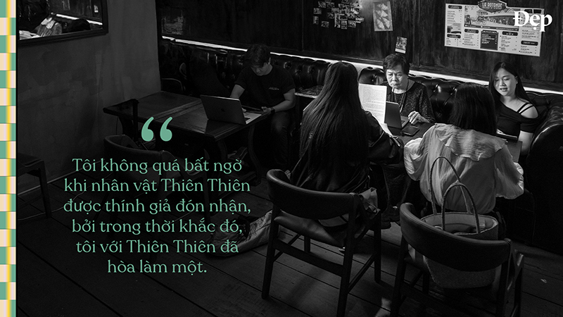 Đạo diễn Việt Linh kể rằng lúc khai trương sân khấu kịch đọc vào tháng 6/2024, chị phải tự đóng vai Thiên Thiên sau vài chọn lựa chưa ưng ý. “Giọng không đẹp như phát thanh viên nhưng tôi là người hiểu rõ tinh thần câu chuyện, tôi sẽ biểu lộ đúng nhất, rung động nhất tâm tư nhân vật, lan truyền rung động đó đến bạn diễn, người nghe. Tôi không quá bất ngờ khi nhân vật Thiên Thiên được thính giả đón nhận, bởi trong thời khắc đó, tôi với Thiên Thiên đã hòa làm một”.