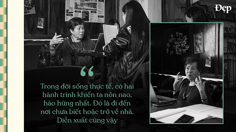 Chị nói thêm rằng kịch đọc cũng giống như kịch thông thường, về nguyên tắc, người diễn viên có thể dùng kỹ thuật, kỹ năng để hóa thân vào nhân vật, miễn hiểu được sâu sắc nội dung kịch bản. Nhưng thăng hoa nhất vẫn là khi diễn viên và nhân vật có tính cách tương đồng hoặc tương kỵ. Giống như trong đời sống thực tế, có hai hành trình khiến ta nôn nao, hào hứng nhất. Đó là đi đến nơi chưa biết hoặc trở về nhà. Diễn xuất cũng vậy.