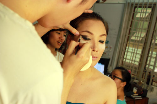 Hồ Quỳnh Hương có một làn da trắng và mịn màng nên quá trình trang điểm diễn ra rất nhanh chóng.
