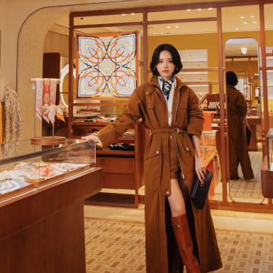 Họa tiết trang trí mang dấu ấn Hy Lạp cổ đại trên đai lưng và vạt chéo trước ngực tạo điểm nhấn cho tổng thể trang phục