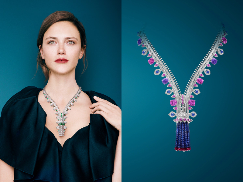 Lịch sử kim hoàn chưa bao giờ vắng bóng những tạo tác lấy cảm hứng từ nghệ thuật may đo. Nhưng nếu phải gọi tên một dấu mốc, hẳn là năm 1938 khi Van Cleef & Arpels trình làng chiếc vòng cổ Passe-Partout, một thiết kế linh hoạt có thể biến hóa thành vòng tay hay ghim cài tùy theo cách đeo. Từ đó, ý niệm về sự chuyển động và thích ứng dần định hình, đặt nền móng cho nguyên lý khóa kéo được thăng hoa trong mẫu vòng cổ Zip ra mắt năm 1951.