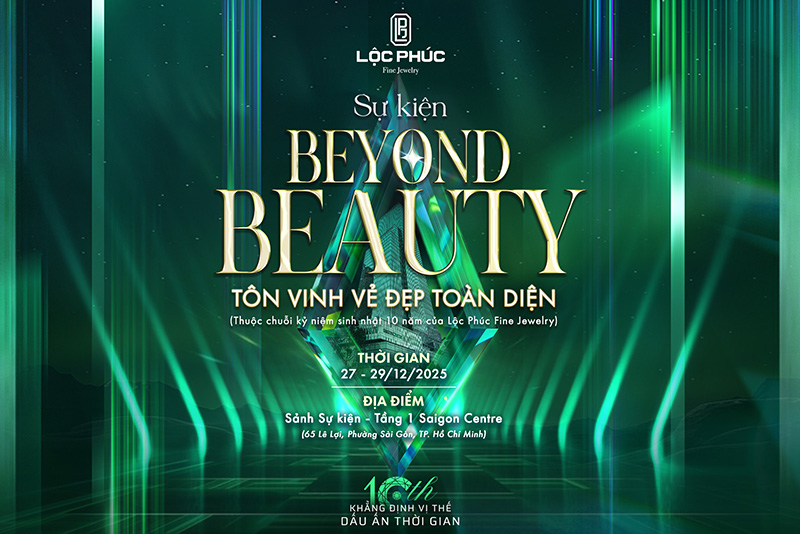Lộc Phúc Fine Jewelry – thương hiệu trang sức cao cấp hàng đầu Việt Nam chính thức công bố sự kiện “Beyond Beauty – Tôn vinh vẻ đẹp toàn diện” diễn ra từ ngày 27 đến hết ngày 29/12/2025, tại Sảnh sự kiện, Tầng 1 thuộc Trung tâm thương mại Saigon Centre (TP. Hồ Chí Minh). Sự kiện là hoạt động trọng điểm kỷ niệm sinh nhật 10 năm của thương hiệu, đồng thời đánh dấu bước phát triển mới về quy mô, tầm vóc và định vị Lộc Phúc Fine Jewelry trong phân khúc trang sức cao cấp.