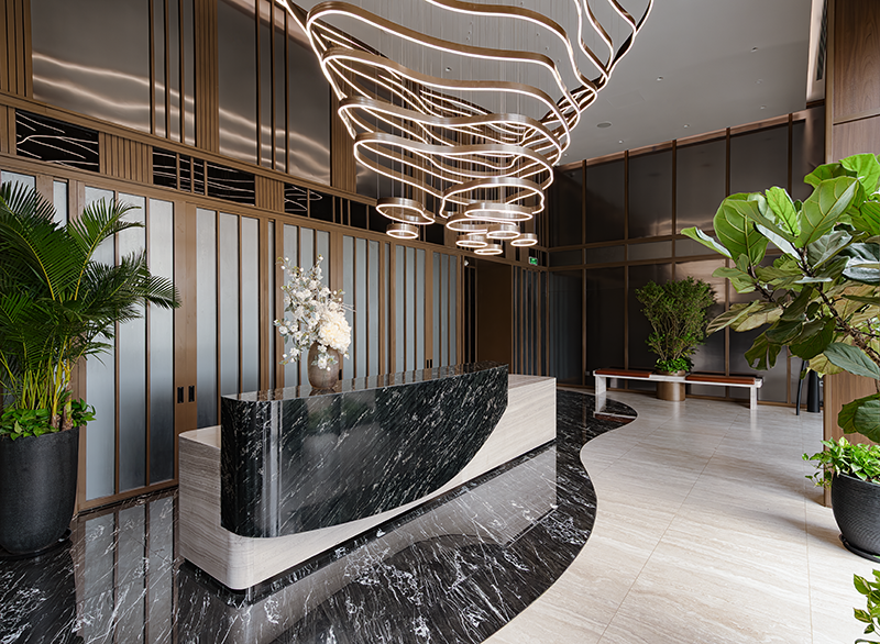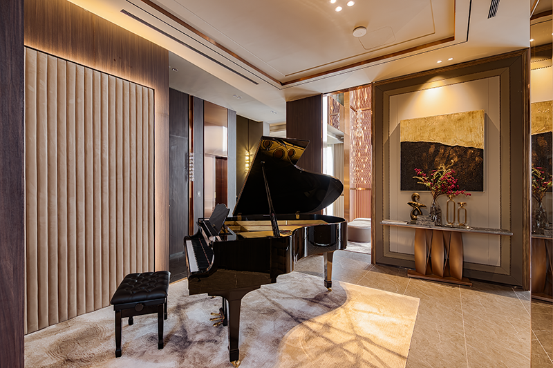 Sử dụng đá tự nhiên cùng điểm nhấn là tông màu đỏ bordeaux, Pool Villa tựa như tuyên ngôn về sự sang trọng và uy quyền. Đẳng cấp nơi đây không phô trương, mà lặng lẽ toát ra vị thế độc tôn, được biểu đạt qua chi tiết nội thất tinh xảo đến từ các thương hiệu đẳng cấp trên thế giới.