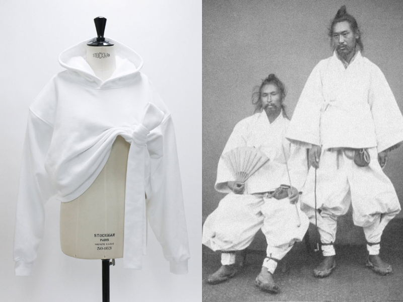 Ngoài ra, trang phục của vũ công được xây dựng như những lớp bảo vệ bao quanh nhân vật trung tâm, lấy cảm hứng từ quần truyền thống có cấu trúc rộng được tạo từ bốn mảnh vải (sapok baji); áo khoác ngắn mặc phía trên, hiện diện trong cả hanbok nam và nữ (jeogori); và dải vải quấn quanh cổ chân hoặc bắp chân dùng để cố định ống quần khi di chuyển, đặc biệt trong bối cảnh lao động hoặc hành trình dài (haengjeon). Tất cả đều được diễn giải lại trong ngữ cảnh trình diễn đương đại.