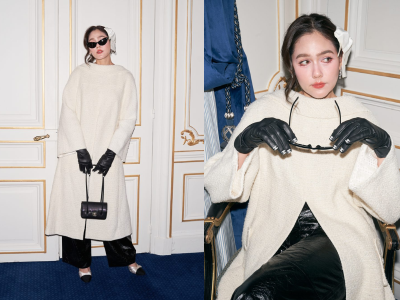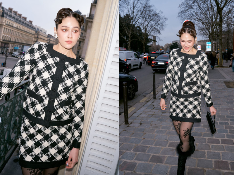 Schiaparelli: Chompoo Araya mở màn tuần lễ với thiết kế đầm đen sở hữu phần chân váy được xử lý cầu kỳ, nổi bật nhờ chi tiết lông bao quanh cổ. Tổng thể diện mạo được hoàn thiện bằng chiếc túi xách đính đá mang hình hài siêu thực.Dior: Ghé đến show diễn của Jonathan Anderson, Chompoo hóa đóa hoa kiêu kỳ, ẩn mình trong chiếc khăn voan ren che hờ mặt, kết hợp cùng bản phối đen-trắng với với áo trắng rũ mềm và quần giả váy cạp cao màu đen.Tamara Ralph: Một trong những bộ cánh rực rỡ nhất của Chompoo Araya tại tuần lễ Haute Couture năm nay đến từ thương hiệu Tamara Ralph. Với thiết kế đầm dạ hội phủ lông vũ hồng-đỏ ngọt ngào, Chomproo tựa nàng công chúa khi bước vào không gian cổ tích của Tamara Ralph.CHANEL: Công thức Parisian-chic pha lẫn nét avant-garde kín đáo chính là sự lựa chọn Chompoo trong ngày thứ hai tại Tuần lễ Thời trang Haute Couture. Đầm tweed trắng dáng suông được phối cùng lớp váy đen, kính râm mắt mèo, nơ bản lớn, găng tay da và giày hai tông màu khiến cô trông không khác gì một “búp bê CHANEL” bước ra từ thế giới Haute Couture.Georges Chakra: Bỗng chốc, Chompoo Araya chuyển mình sang một sắc thái khác, khoác lên bộ cánh đen tuyền dáng dài với đường xẻ cao đầy táo bạo. Lớp lông vũ dày dặn bao phủ phần vai và thân trên, cùng chất liệu rũ nhẹ ánh kim lấp lánh đan xen, tất cả như phác họa hình ảnh một diva cổ điển, pha lẫn vẻ nổi loạn.Giorgio Armani Privé: Tạm rời xa những chiếc đầm dạ hội, Chompoo Araya khoác lên mình diện mạo quyền lực với áo khoác nhung đen, hàng khuy chạy dọc thân áo phối cùng quần tây đồng điệu. Đặc biệt, chiếc mũ beret mang hơi thở Parisian làm dịu tinh thần menswear, neo giữ chút nữ tính và duyên dáng.Elie Saab: Bước vào không gian gợi nhớ mùa hè cũng năm 1971, Chompoo Araya hóa nàng thơ từ miền mộng tưởng, khoác lên mình chiếc đầm chấm bi với phom dáng trễ vai, cùng chiếc phụ kiện tóc là chiếc cài voan trắng duyên dáng.Valentino: Khép lại hành trình năm nay, Chompoo mang diện mạo trong bản phối ton-sur-ton áo khoác lửng và chân váy ngắn tweed dệt họa tiết caro đen trắng nổi bật. Điểm xuyết cho tổng thể là đôi tất ren hoa hồng, bốt đính lông vũ đen và chiếc túi Valentino Garavani da đen tối giản chính là điểm kết cho hoàn hảo cho lần xuất hiện này.