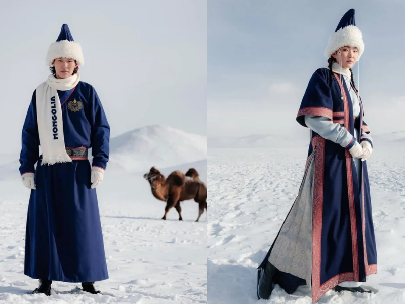 Được đánh giá là một trong những thiết kế gây ấn tượng nhất, Goyol Cashmere đã tái hiện trang phục truyền thống bằng chất liệu cashmere thượng hạng. Đây là một lựa chọn kỹ thuật mang tính chiến lược vì cashmere tự nhiên có khả năng giữ ấm vượt trội trong điều kiện âm độ nhưng vẫn giữ được độ nhẹ tênh. Các họa tiết lấy cảm hứng từ lụa và nghệ thuật dệt thủ công không chỉ tôn vinh di sản Mông Cổ mà còn tạo nên một diện mạo đầy quyền lực tại lễ khai mạc.