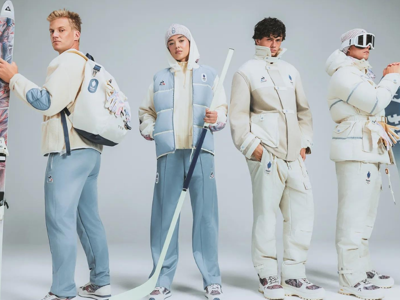 Lấy cảm hứng từ kho lưu trữ năm 1976, Le Coq Sportif mang đến các thiết kế phong cách retro với cổ áo rộng và vải sherpa tái chế. Điểm nhấn kỹ thuật độc đáo nhất là cách thương hiệu tái hiện quốc kỳ Pháp bằng cách chà sắc tố lên vải nhăn và phun sơn để tạo hiệu ứng như một bản đồ địa hình. Sự kết hợp giữa vải kỹ thuật công thái học và đế giày Vibram giúp các vận động viên Pháp sở hữu diện mạo lịch lãm nhưng vẫn đảm bảo sự an toàn trên địa hình tuyết trơn trượt.