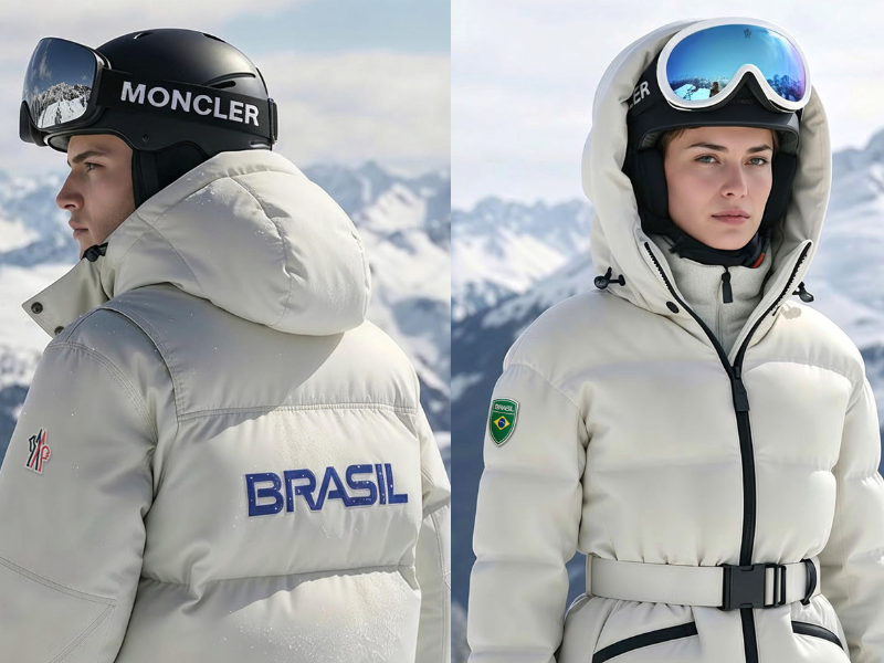 Dù đến từ vùng nhiệt đới, đội tuyển Brazil lại sở hữu trang phục kỹ thuật đẳng cấp nhờ sự hỗ trợ của Moncler. Thương hiệu cung cấp các lớp cách nhiệt lông vũ siêu nhẹ cùng kỹ thuật cắt may chính xác. Đặc biệt, bộ đồ đua với họa tiết ngôi sao được phát triển riêng cho vận động viên Lucas Pinheiro Braathen, giúp giảm thiểu tối đa lực cản không khí trong các nội dung trượt tuyết đổ đèo.