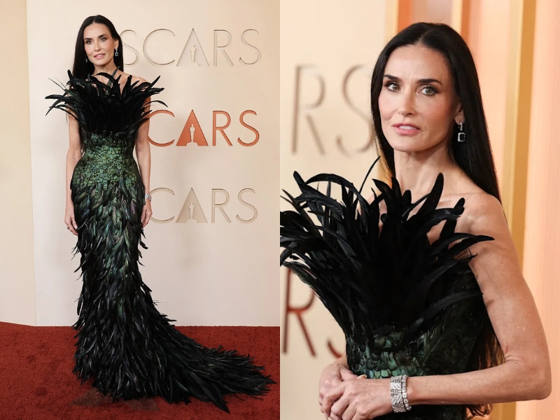 Jessie Buckley không chỉ có một mùa giải thưởng bội thu mà tên của cô còn liên tục xuất hiện trong các danh sách ăn mặc đẹp nhất trên thảm đỏ, và lần này cũng không phải là ngoại lệ. Nữ diễn viên chọn cho mình mẫu đầm CHANEL màu hồng mềm mại, được tô điểm bằng phần vai áo quấn ngang làm bằng lụa màu đỏ cam rực rỡ. Bộ trang phục này được lấy cảm hứng từ thiết kế của Edith Head mà minh tinh Grace Kelly đã mặc tại lễ trao giải Oscar năm 1956.Lông vũ đã trở thành xu hướng nổi bật trên thảm đỏ lễ trao giải Oscar 2026. Minh tinh Demi Moore là người đầu tiên gây ấn tượng mạnh mẽ với chiếc đầm Gucci được thiết kế riêng. Bộ trang phục được chế tác từ lông vũ màu đen và xanh lục óng ánh theo hiệu ứng chuyển màu, đường viền cổ áo đính lông tạo nên nét chuyển động duyên dáng. Cô diễn viên tô điểm thêm cho chiếc đầm bằng trang sức Boucheron, bao gồm đôi hoa tai Vendôme Liseré đính đá tourmaline xanh, được bao quanh bởi kim cương và vàng trắng.Ngôi sao của phim “If I Had Legs I’d Kick You” – Rose Byrne đem đến thảm đỏ Oscar 2026 vẻ đẹp cổ điển mà vô cùng lộng lẫy: đầm cúp ngực màu đen, dáng đuôi cá, được tô điểm bằng những hình thêu hoa lá tinh xảo. Đây là một sản phẩm haute couture do Dior thiết kế riêng cho Rose, dựa trên một diện mạo nằm trong BST Haute Couture Xuân Hè 2026 của thương hiệu. Trong số những món trang sức mà nữ diễn viên đeo, chiếc vòng cổ Taffin của cô có một viên kim cương “sa mạc” (tên gọi chỉ những viên kim cương có màu sắc tự nhiên) hình quả lê màu vàng nâu tuyệt đẹp, nặng tổng cộng 22,58 carat.Không chỉ là lần đầu tiên tham dự Oscar mà đây còn là năm sự nghiệp điện ảnh đầu tiên của Chase Infiniti với bộ phim “One Battle After Another”. Nhưng nữ diễn viên cùng với các stylist của mình đã chinh phục hết thảm đỏ này đến thảm đỏ khác như một đội ngũ dày dạn kinh nghiệm. Suốt mùa giải thưởng này, Chase đã diện nhiều trang phục Louis Vuitton được thiết kế riêng. Điểm nhấn thời trang đó đã đạt đến đỉnh cao trong diện mạo hôm nay: một chiếc đầm dài màu tím nhạt, phần thân trên bó sát, chân váy xếp ly nửa thân và cổ yếm. Chiếc vòng cổ kim cương của De Beers giúp bộ trang phục toát lên vẻ trẻ trung mà vẫn rất quyến rũ.Diễn viên Teyana Taylor đã nâng tầm phong cách thảm đỏ của mình qua mỗi lần xuất hiện trong chuỗi giải thưởng của “One Battle After Another”. Hôm nay, cô lại tiếp tục gây ấn tượng mạnh mẽ trong thiết kế thảm đỏ đầu tiên của Matthieu Blazy thời kỳ CHANEL. Những chi tiết lông vũ và sequin lấp lánh mang đậm phong cách CHANEL cổ điển, nhưng việc kết hợp chúng với phần thân áo xuyên thấu cùng đuôi váy xòe lông vũ khổng lồ lại hoàn toàn mang tinh thần đương đại của năm 2026. Chiếc vòng cổ Tiffany & Co. với hơn 18 carat kim cương càng làm tăng thêm vẻ rực rỡ cho nữ diễn viên.Elle Fanning tiếp tục khẳng định tình yêu bất tận đối với những chiếc đầm công chúa tuyệt đẹp. Được làm từ vải tuyn lụa trắng, mẫu đầm cúp ngực Givenchy làm riêng cho nữ diễn viên có phần thân trên tạo phom corset và phần chân váy xòe bồng bềnh thêu hoa tử đằng bằng satin. Chủ đề hoa tử đằng cũng được thể hiện trong trang sức, với chiếc vòng cổ kim cương Cartier mang thiết kế cổ điển từ năm 1903.Mang thai chín tháng mà vẫn sải bước trên thảm đỏ Oscar 2026? Ngôi sao của phim “Sinners”, Wunmi Mosaku, khiến mọi chuyện trông thật dễ dàng và sành điệu. Với chiếc đầm màu xanh ngọc bích lấp lánh do Louis Vuitton cung cấp và được stylist Shameelah Hicks chỉnh sửa hoàn hảo, Wunmi đã thể hiện một phong cách thời trang bà bầu hoàn hảo với thảm đỏ. Trong suốt mùa giải thưởng, cô đã thể hiện gu thời trang đẳng cấp với những bộ trang phục lộng lẫy nhất. Cô cũng không quên bày tỏ lòng kính trọng đối với cộng đồng người Nigeria ở nước ngoài bằng một kiểu tóc búi cầu kỳ lấy cảm hứng từ di sản văn hóa của mình.Minh tinh Nicole Kidman đã hiện thực hoá biệt danh “Thiên nga nước Úc” của mình với thiết kế dạ hội đến từ nhà mốt CHANEL. Chiếc đầm lụa crepe màu hồng phấn; có phần thân áo được thêu bằng pha lê trắng, xám cùng hạt cườm đen; phần eo và chân váy được tạo điểm nhấn bằng lông vũ màu be, hồng, nude và màu đào. Trang sức cao cấp của CHANEL và chiếc đồng hồ Omega cổ điển từ năm 1966 là lựa chọn phụ kiện hoàn hảo cho một buổi tối đòi hỏi sự sang trọng và lộng lẫy.Ngôi sao của phim “Sinners” – diễn viên Michael B. Jordan xuất hiện trong chiếc áo khoác kiểu Nehru màu đen được may đo hoàn hảo, với điểm nhấn là cúc áo bóng loáng và chiếc dây xích nổi bật. Bộ lễ phục này do Louis Vuitton thiết kế riêng cho nam diễn viên.Một năm sau chiến thắng Nữ diễn viên chính xuất sắc nhất cho phim “Anora”, Mikey Madison đã trở lại Nhà hát Dolby với tư cách người trao giải tại Lễ