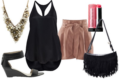 Quần soóc cạp cao và áo ba lỗ – kết hợp rất trẻ trung và cá tính. Bạn cũng có thể kết hợp với các phụ kiện thời thượng như túi tua rua tassel hay vòng cổ to bản độc đáo …