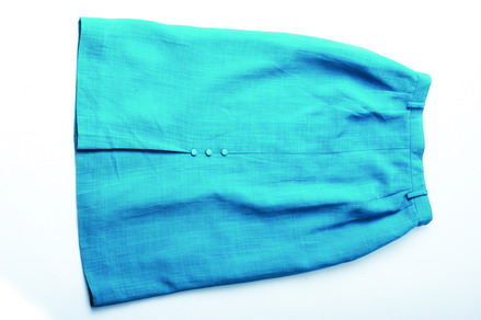 Váy bút chì xanh đơn giản, chất liệu line (LAM) nhưng giúp tôn vóc dáng.