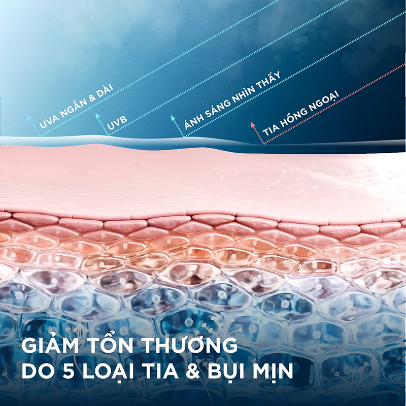 Trong đó, sự góp mặt của công nghệ Detox tạo ra hệ thống phòng thủ chủ động trước 5 loại tia gây hại cùng các tác nhân gây oxy hóa từ môi trường đô thị. Phức hợp TBMA và Bentonite còn hỗ trợ làn da chống oxy hóa, bảo vệ DNA nhờ loại bỏ tác động từ bụi mịn, cho da sáng khỏe hơn.