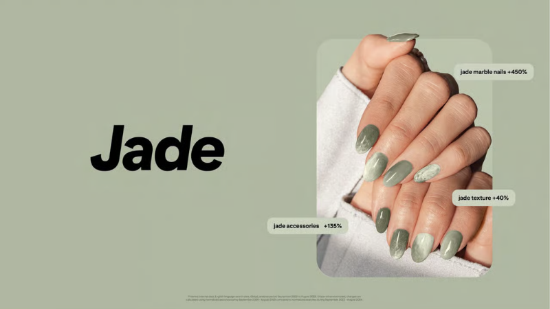 Nếu sắc xanh chiếm lĩnh trước đó là xanh hạt dẻ Pistachio, thì năm 2026 gọi tên xanh ngọc bích – Jade. Nằm ở điểm chạm giữa xanh bạc hà và xanh rêu, Jade mang năng lượng của sự chữa lành, như cái vỗ về của thiên nhiên. Gam màu này xuất hiện trong các tìm kiếm về phụ kiện, họa tiết và vật liệu mang chất liệu tự nhiên, thể hiện xu hướng thiết kế hướng tới sự thư giãn và gắn kết với thiên nhiên. Ở sàn diễn 2026, sắc xanh ngọc bích phủ sóng trên các chất liệu thô mộc như linen, cotton hay vải kaki trong các thiết kế quần cargo cách điệu, áo khoác bomber và chân váy maxi xẻ tà. Các nhà thiết kế cũng khéo léo lồng ghép sắc xanh này vào các họa tiết hoa nhí hoặc kẻ sọc cổ điển, biến nó thành gam màu chủ đạo cho các bộ sưu tập Xuân Hè 2026, gợi nhắc đến sự kết nối mật thiết với thiên nhiên và tinh thần phiêu du tự tại.