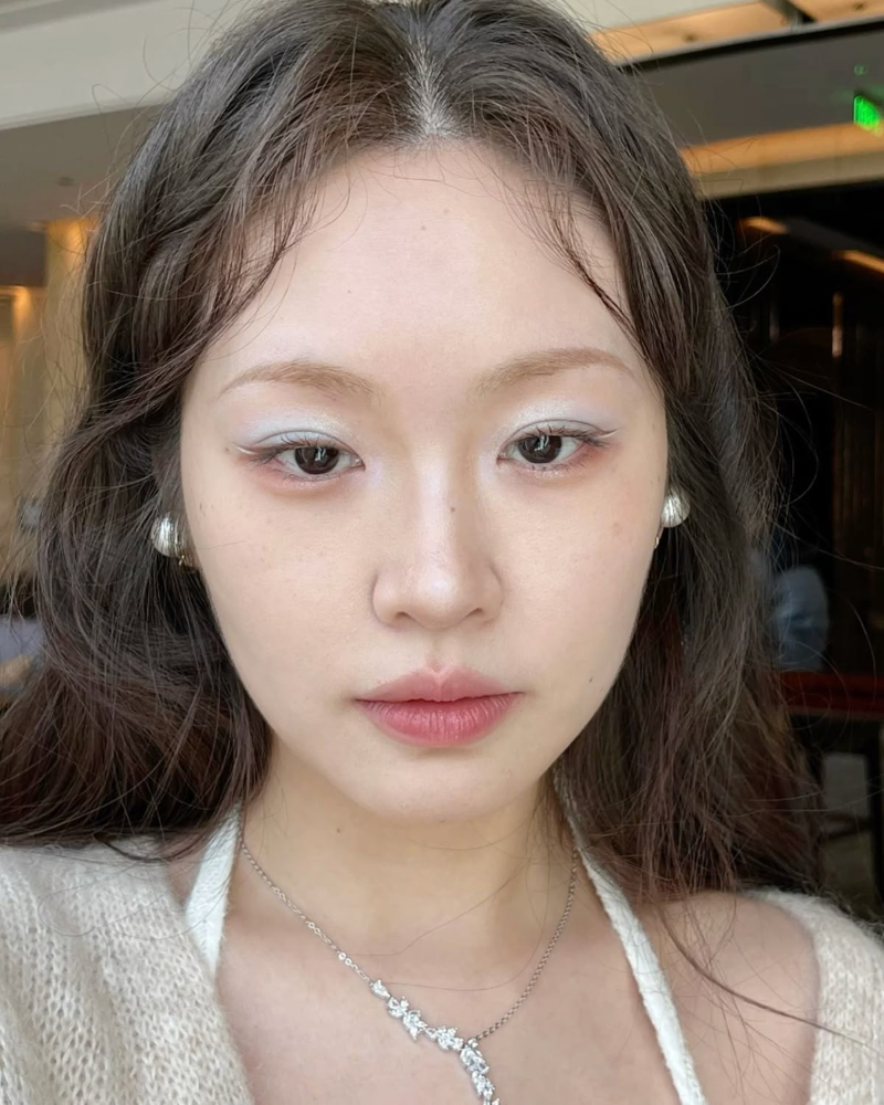 Một trong những cách tiếp cận dễ dàng nhất chính là lựa chọn tông xanh nhạt, như baby blue hay xanh băng giá. Gam màu này không hề lấn át đường nét tự nhiên, mà ngược lại, nhẹ nhàng dẫn dắt ánh nhìn tập trung vào đôi mắt. Khi kết hợp cùng lớp nền trong trẻo và son môi tối giản, tổng thể trở nên thanh thoát, tinh tế mà vẫn đủ sức gây ấn tượng. Đây là lựa chọn lý tưởng cho những ai yêu thích vẻ đẹp nhẹ nhàng, hoặc chưa thực sự tự tin với những layout trang điểm cầu kỳ.