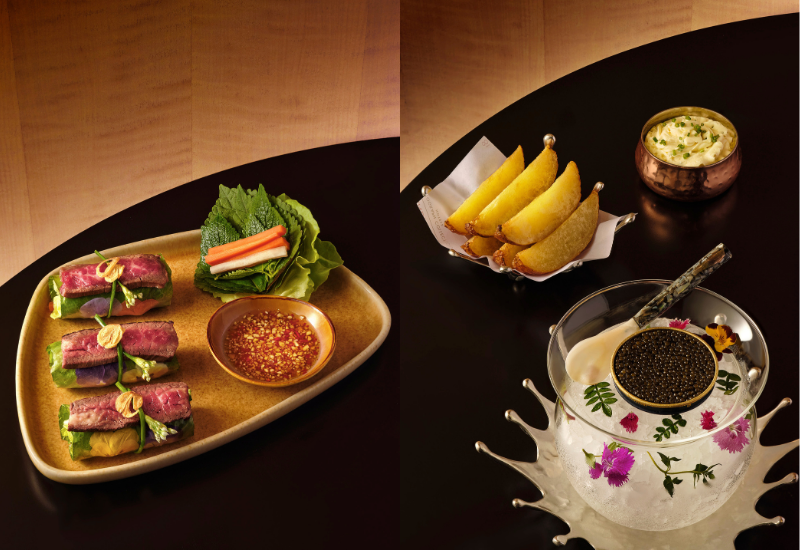 Trong khi đó, thực đơn món ăn giữ tinh thần hiện đại, dễ chia sẻ và không cầu kỳ. Những món ăn quen thuộc được nâng cấp tinh tế qua kỹ nghệ chế biến như gỏi cuốn bò Wagyu Úc và tôm hùm Tôm Nha Trang, bánh hoành thánh chiên đậm vị cùng bò Úc hầm rượu vang và xốt phô mai Cheddar, khoai tây múi cau chiên giòn cùng trứng cá tầm và kem chua, hay các loại phô mai hạt điều chay béo bùi ăn kèm bánh tráng mè giòn tan. Tất cả được chuẩn bị chỉn chu, cộng hưởng hương vị trọn vẹn bên những ly cocktail nồng nàn.