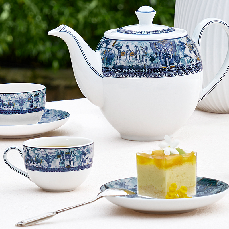 Trong khi đó, bộ sưu tập Nam Quốc kể câu chuyện về niềm tự hào văn hóa theo cách rất đương đại. Những họa tiết được chắt lọc từ danh thắng của ba miền đất nước, nay được thể hiện tinh xảo với màu xanh cobalt đặc trưng, vừa gợi nhắc chiều sâu Á Đông, vừa hòa hợp với không gian sống hiện đại. Đó là cảm giác phú quý không nằm ở sự cân bằng và trọn vẹn.