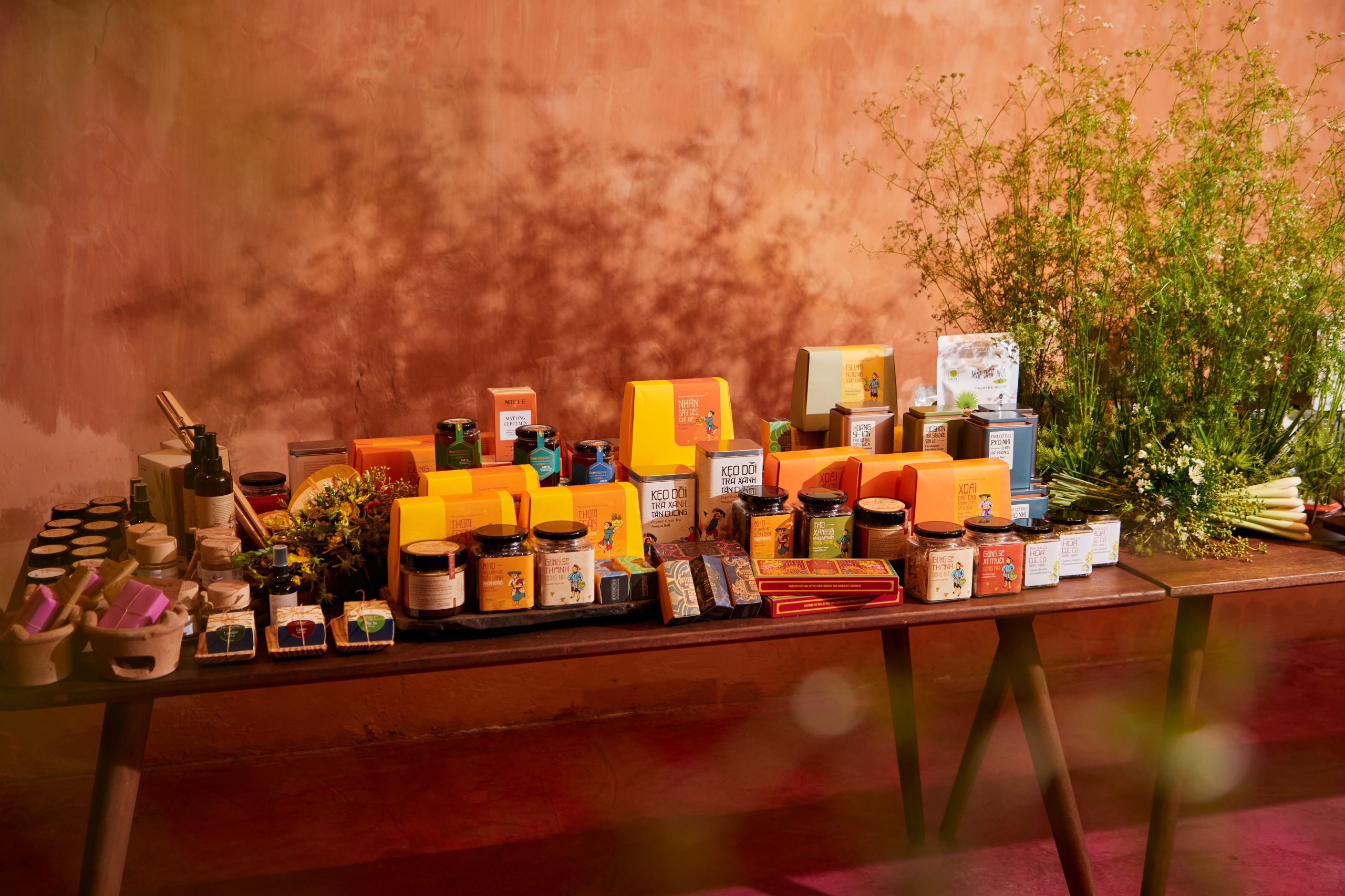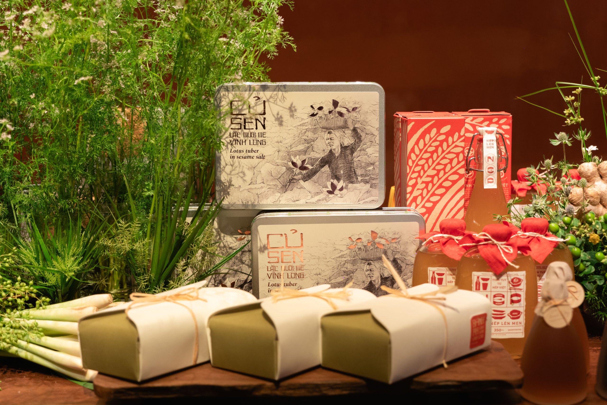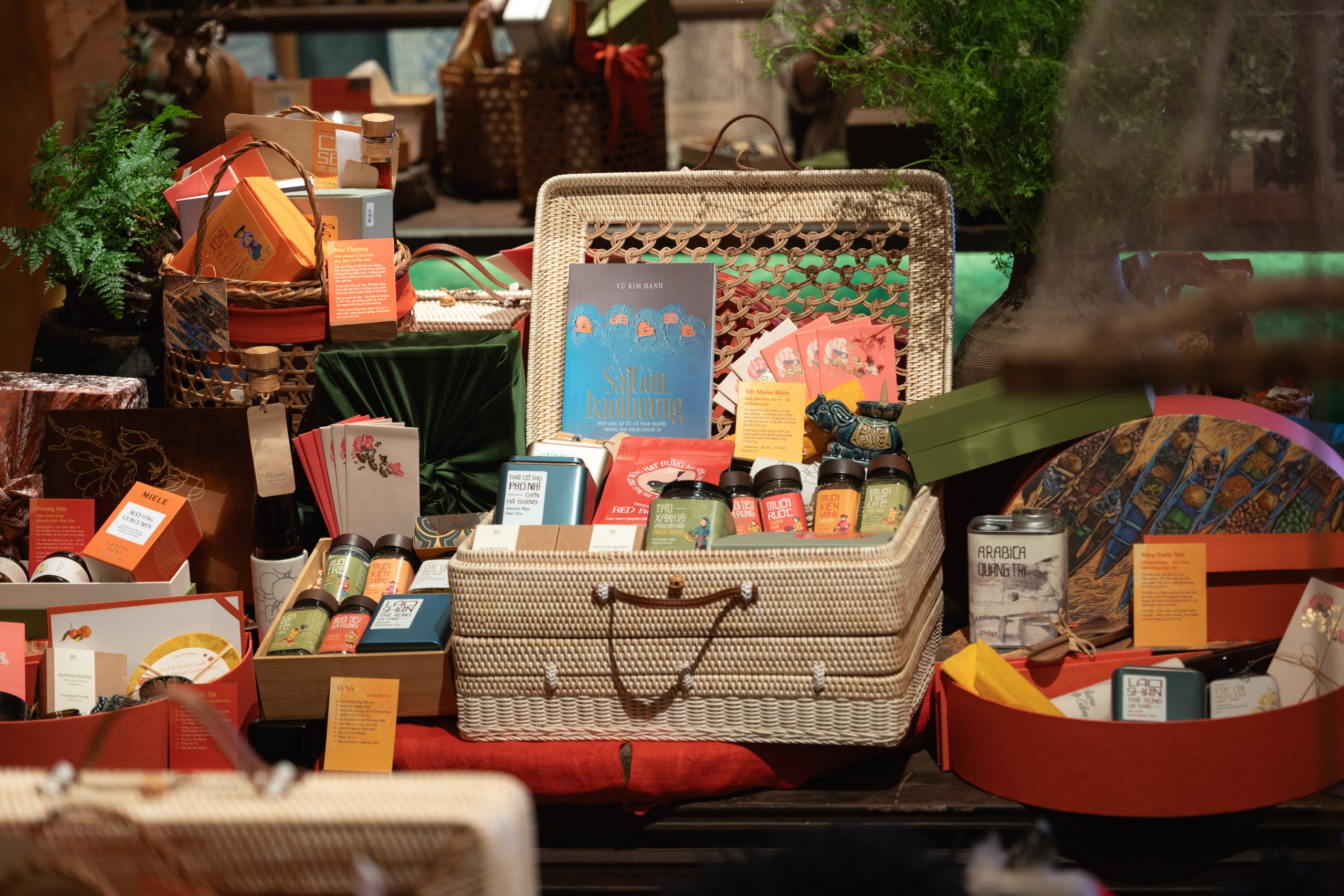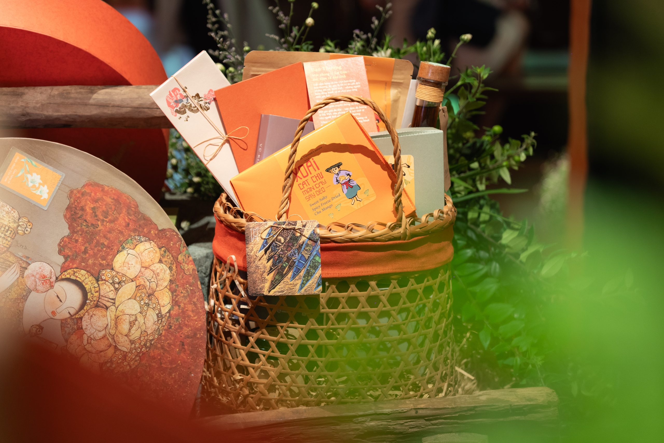 Nếu bộ quà “Tết Muôn Miền” ấn tượng với thiết kế hộp “vali” gói ghém trà thơm, rượu quý, gia vị, đặc sản vùng miền cùng sản phẩm chăm sóc thân tâm và cửa nhà, thì bộ quà “Hương Sắc Tết” mang đến lời chúc an lành giữa nhịp sống bận rộn, tìm lại sự cân bằng nơi sắc gốm, ánh nến và hương trầm. Trong khi đó, bộ quà “Mùa Nước Nổi” tôn vinh văn hoá sông nước Việt Nam phóng khoáng, như lời chúc về một năm mới trù phú, là cuộc hội ngộ những thức quà từ châu thổ đến rẻo cao như trà hữu cơ, cà phê Quảng Trị, nếp cẩm lên men…