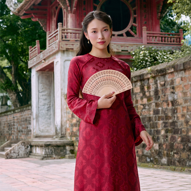 Đầm: Le Thanh HoaLà gam màu lên ngôi mạnh mẽ nhất năm 2024, sắc đỏ thể hiện những cảm xúc đa chiều của người phụ nữ, lúc kín kẽ, dịu dàng, khi mạnh mẽ, táo bạo. Áo và chân váy: Dang Hai YenĐầm và áo khoác: Le Lam – Vòng cổ: The SBộ ảnh được thực hiện tại Bảo tàng Nghệ thuật Hồn Đất Việt Bát Tràng, nơi gìn giữ những tác phẩm gốm độc bản của cố nghệ nhân Vũ Thắng trong suốt 50 năm làm nghề. Đầm: Jenny K Tran – Vòng tay, nhẫn, bông tai: The S