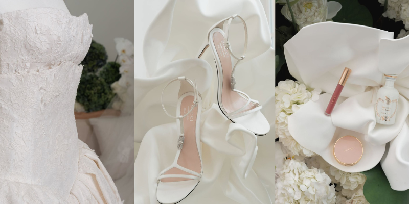 Thiết kế được hoàn thiện với tấm voan mỏng nhẹ viền ren, cùng đôi giày đồng chất liệu, trang trí bằng biểu tượng Bamboo gắn pha lê. Bên trong lớp lót giày, tên “Mai Davika” được khắc tinh tế như một dấu ấn cá nhân, như thể toàn bộ thiết kế được sinh ra chỉ để thuộc về cô.