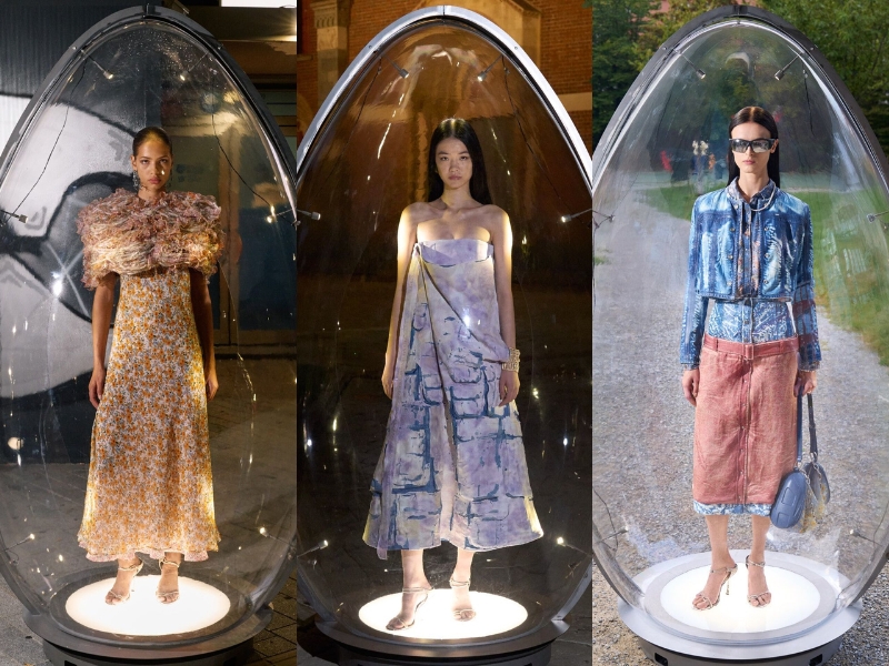 Ở một diễn biến khác, NTK Glenn Martens của Diesel một lần nữa lại tránh xa những buổi trình diễn thời trang truyền thống. Lần này là một cuộc “săn trứng” quy mô lớn quanh thành phố Milan. Các người mẫu tạo dáng riêng lẻ trong những mô hình quả trứng trong suốt, khoác lên mình những bộ trang phục mới nhất từ BST Diesel Xuân Hè 2026. Bên cạnh mỗi người mẫu là một mã QR chỉ dẫn đến các quả trứng ở nơi khác. Người chơi sẽ theo chỉ dẫn để thu thập tất cả các quả trứng, những người thu thập nhanh nhất sẽ sở hữu các thiết kế may đo riêng. Đây là một động thái khéo léo nhằm dân chủ hóa thời trang – điều mà Diese đã từng cố gắng thực hiện trước đây thông qua các chương trình và sự kiện hướng đến công chúng.