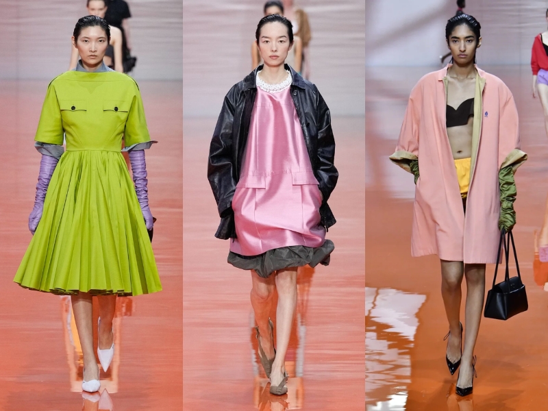 Trung thành với những sàn diễn mang tính ý niệm và cảm hứng đương đại, Miuccia Prada và Raf Simons đã đặt câu hỏi về hiện trạng thời trang với BST Prada Xuân Hè 2026. Khơi gợi suy nghĩ về những hạn chế trong ăn mặc, Prada đã tái hiện vẻ nữ tính thông qua những chi tiết quần yếm bảo hộ, chân váy bất đối xứng, những kiểu dáng cơ bản được may đo tỉ mỉ và những bộ đồ lấy cảm hứng từ kiểu nội y được thiết kế với sự kết hợp hai màu sắc tương phản rõ rệt để tạo điểm nhấn nổi bật. Bảng màu trải dài từ những sắc thái dịu nhẹ và màu pastel cho đến những sắc vàng đậm, đỏ tía, xanh neon. Những đường nét thiết kế dao động giữa sự lôi cuốn và phá cách. Ngạo mạn, thông minh và phá cách, người phụ nữ Prada ăn mặc như một lời đáp trả cho “sự quá tải của văn hóa đương đại”.