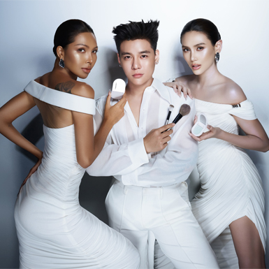 Bước 3: Phủ nhẹ nhàng phấn má hồng nhạt cho hai gò má, tô son cùng tông cho môi.