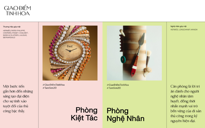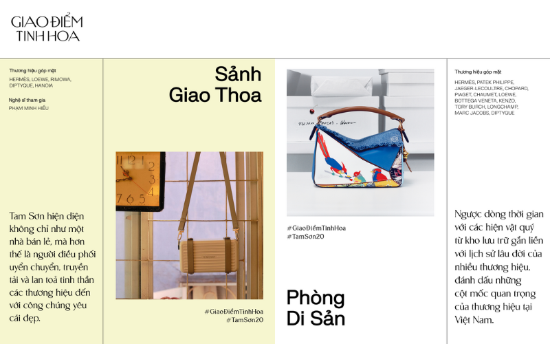 Kỷ niệm hành trình 20 năm kiến tạo cảm hứng sống và tôn vinh cái đẹp, Tam Sơn mang đến công chúng triển lãm “Giao điểm tinh hoa” – nơi nghệ thuật, thủ công và tinh thần sáng tạo hội tụ trong không gian di sản Hoàng thành Thăng Long. Triển lãm tái hiện cầu nối mà Tam Sơn đã bền bỉ xây đắp suốt hai thập kỷ, mà ở đó, thương hiệu hiện diện không chỉ với vai trò của nhà bán lẻ, mà còn là người điều phối uyển chuyển đưa những giá trị tinh hoa toàn cầu chạm tới những tâm hồn duy mỹ tại Việt Nam.