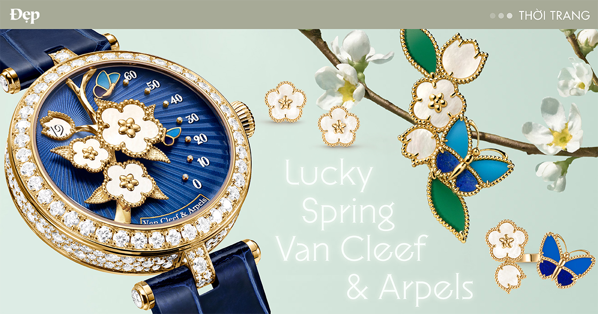 Trong bộ sưu tập Lucky Spring, hình ảnh bọ rùa xuất hiện bên cạnh hoa mận, nụ linh lan và những nhánh lá mảnh. Năm nay, con bướm vốn là một mô-típ đã hiện diện trong di sản của Van Cleef & Arpels từ năm 1906 được đưa vào bố cục. Bộ sưu tập vốn được triển khai trên nền vàng hồng, nay được mở rộng với 5 thiết kế mới bằng vàng vàng, gồm vòng cổ dài, vòng tay 5 mô-típ, ghim cài, nhẫn Between the Finger và một đôi hoa tai. Trên chiếc vòng cổ dài, hình tượng bướm xuất hiện ba lần. Khi được thể hiện ở góc nghiêng, khi ở chính diện, cánh bướm tạo cảm giác chuyển động dọc theo sợi dây.