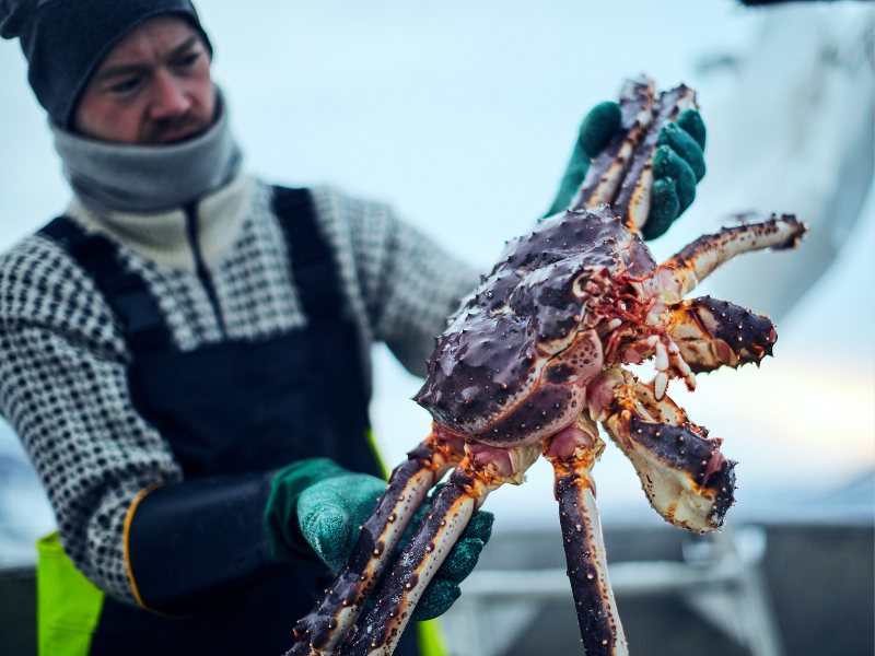 Hãy nhắm mắt và để tâm trí bạn trôi về một miền tĩnh lặng tuyệt đối, nơi mọi giác quan được đánh thức đến tột cùng. Trên cao, cực quang chuyển động như những dải lụa màu mềm mại. Dưới làn nước trong vắt của biển Barents, một huyền thoại khẽ chuyển mình. Đó là vương quốc của Cua Hoàng Đế Đỏ Na Uy – sinh vật được tôi luyện bởi băng giá, lớn lên giữa vùng nước tinh khiết nhưng cũng đầy khắc nghiệt.