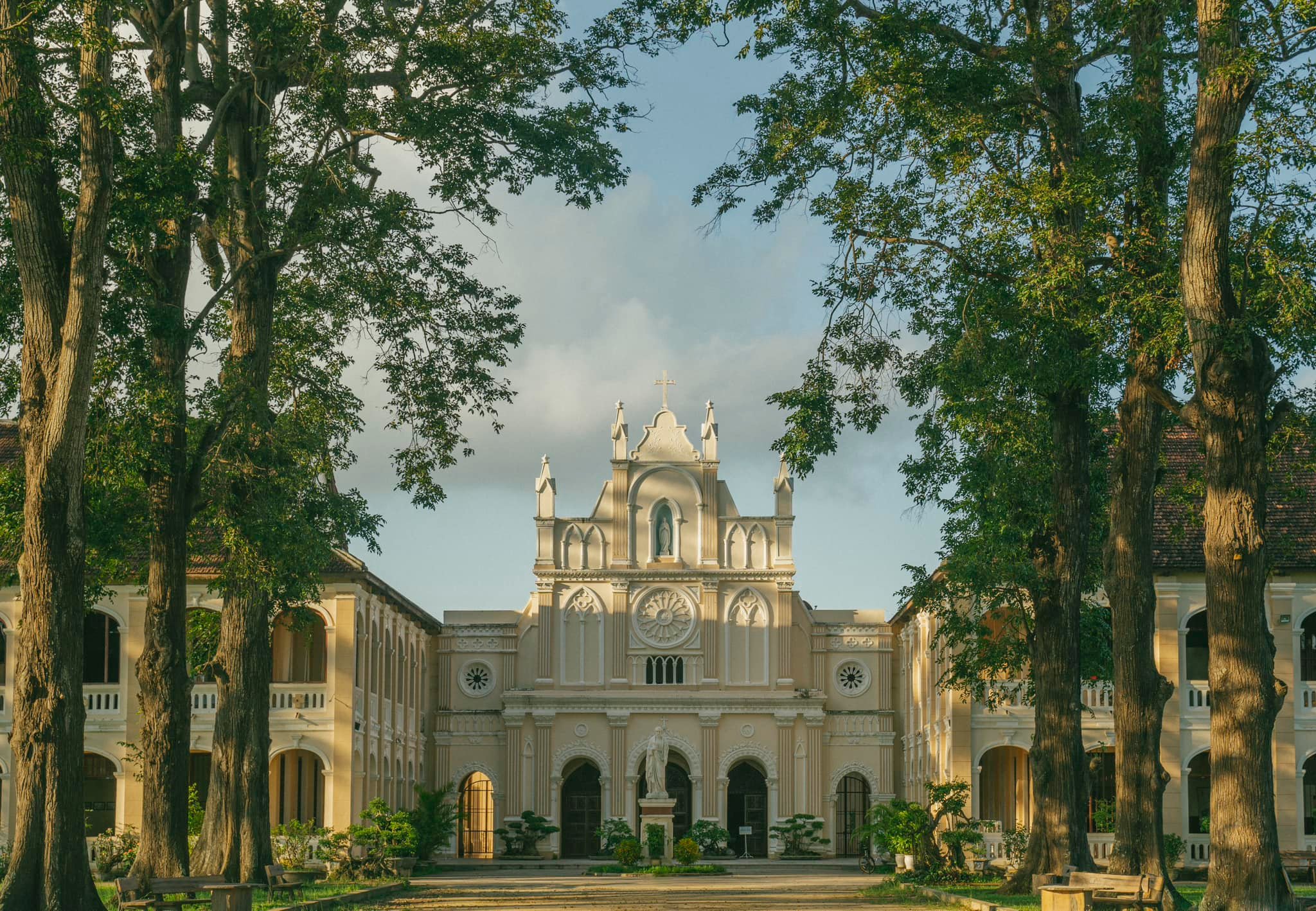 Trong những ngày qua, cộng đồng mạng và những người yêu điện ảnh đang truyền tai nhau về những thước phim tuyệt đẹp từ dự án “Hẹn Em Ngày Nhật Thực”. Giữa những khung hình nhuốm màu hoài niệm, hình ảnh một ngôi thánh đường mang phong cách Gothic phương Tây hiện lên đầy trầm mặc, bao quanh bởi những hàng sao xanh mướt đã ngay lập tức “gây sốt”. Địa danh ấy chính là Tiểu chủng viện Làng Sông (hay còn gọi là Nhà thờ Làng Sông) – một công trình đã tồn tại hàng trăm năm, mang trong mình nhiều lớp trầm tích văn hóa và lịch sử.