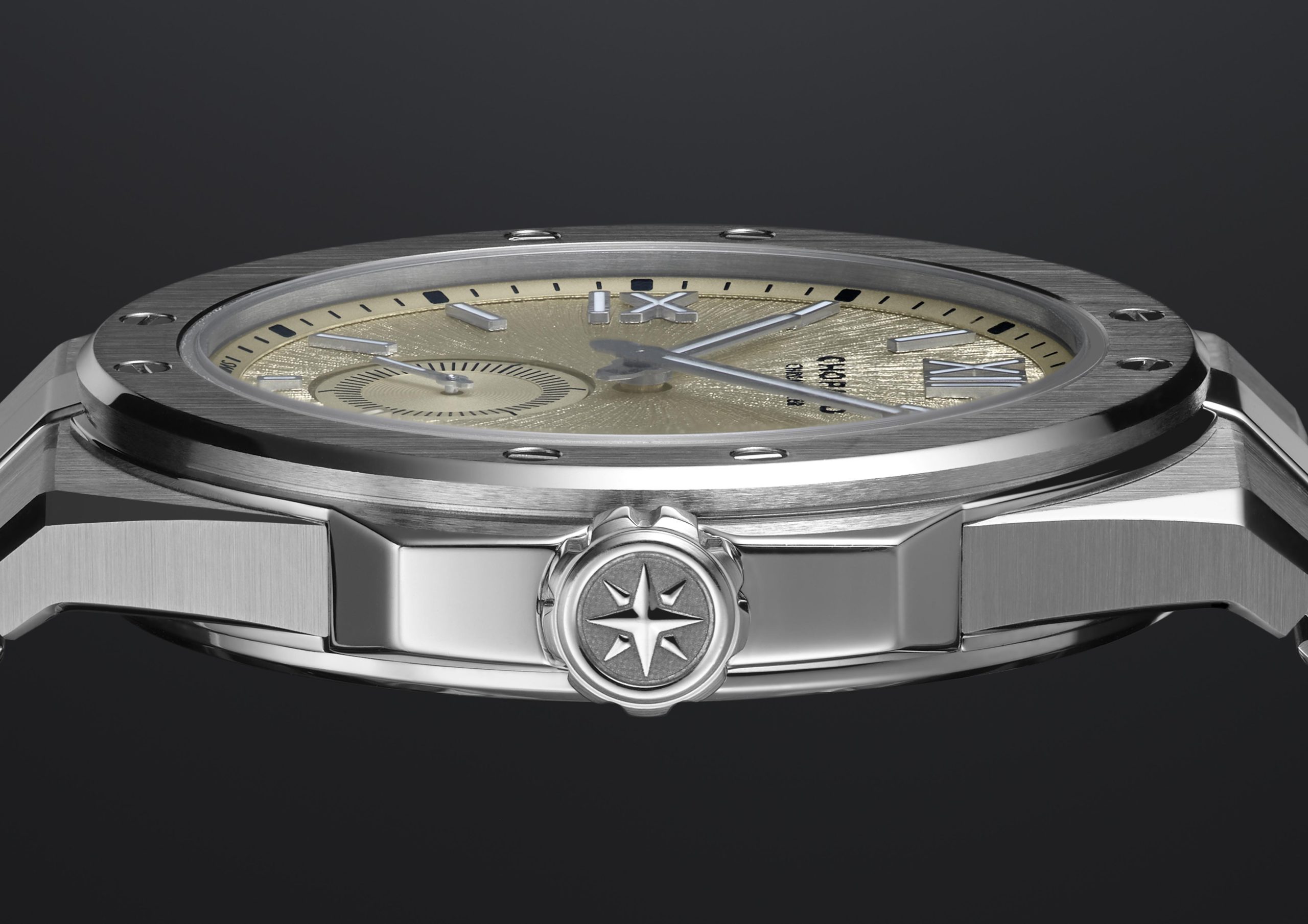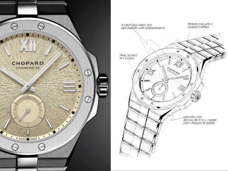Kế thừa tinh thần của dòng St. Moritz ra đời năm 1980, Chopard Alpine Eagle 41 XPS cho thấy nỗ lực hợp tác xuyên suốt ba thế hệ của gia đình Scheufele. Vẻ đẹp từ những đỉnh núi thể hiện qua mặt số mang sắc màu “Mountain Glow”, tông champagne mô phỏng ánh bình minh trên những đỉnh núi Alpine phủ tuyết. Họa tiết tỏa tròn lấy cảm hứng từ mống mắt của chim đại bàng mang lại chiều sâu sống động cho kiệt tác thời gian này.