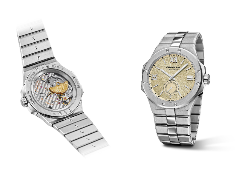 Ngay trước thềm triển lãm Watches and Wonders 2026, Chopard gửi gắm tâm điểm vào hai điểm tụ đối lập: sự mạnh mẽ của mẫu đồng hồ Alpine Eagle 41 XPS và nét kiều diễm của Happy Hearts thuộc bộ sưu tập Happy Sport. Dù cả hai đều sở hữu bộ vỏ Lucent Steel™, nhưng Alpine Eagle 41 XPS gây ấn tượng với vỏ siêu mỏng bao quanh mặt số “Mountain Glow”, còn tinh thần thể thao của Happy Hearts được củng cố bằng dây đeo denim, tương phản với mặt số xà cừ.