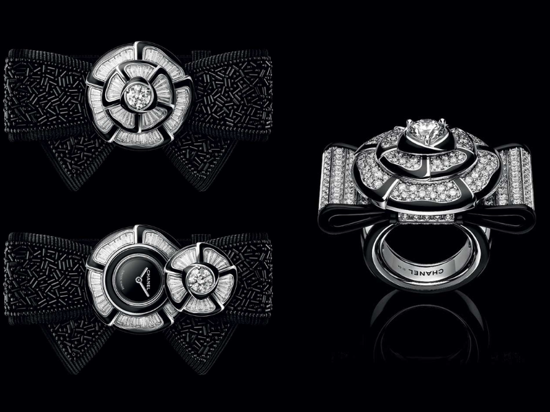 Sự kết hợp giữa kỹ nghệ Haute Couture và đồng hồ “bí mật” được đẩy lên đỉnh cao trong bộ sưu tập “Noeud de Camélia”. Hình tượng hoa trà, biểu tượng vĩnh cửu của nhà mốt từ năm 1913, hiện diện như một dấu ấn thẩm mỹ xuyên suốt bộ sưu tập. Tại đây, những kỹ nghệ thủ công tinh vi nhất hội tụ, từ dây đeo da hiệu ứng grosgrain thêu sequin thủ công bởi Maison Lesage đến kỹ thuật nạm kim cương biến ánh sáng thành chất liệu chủ đạo. Đặc biệt, mẫu vòng cuff Noeud de Camélia với viên kim cương cắt Asscher 5,23 carat ở trung tâm là một khối điêu khắc ánh sáng thực thụ, chỉ hé lộ mặt số nạm kín kim cương khi người sở hữu cử động.