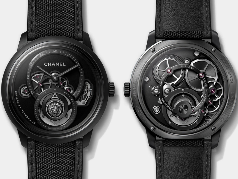Ở phân khúc dành cho quý ông, Monsieur Lion Tourbillon Black Edition tiếp tục là lời khẳng định về năng lực chế tác máy đỉnh cao. Trái tim của tạo tác là bộ chuyển động Caliber 5.1, được lắp ráp thủ công hoàn toàn. Điểm nhấn thu hút mọi ánh nhìn chính là lồng tourbillon bay đặt tại vị trí 6 giờ. Bên trong đó, một biểu tượng đầu sư tử bằng titanium được điêu khắc bằng công nghệ laser chính xác đến từng micromet, dường như đang lơ lửng và chuyển động theo nhịp đập của cỗ máy. Sự kết hợp giữa vỏ gốm đen mờ, vành bezel thép xử lý đen và các chi tiết cơ khí tối giản tạo nên một chiều sâu thị giác ấn tượng.