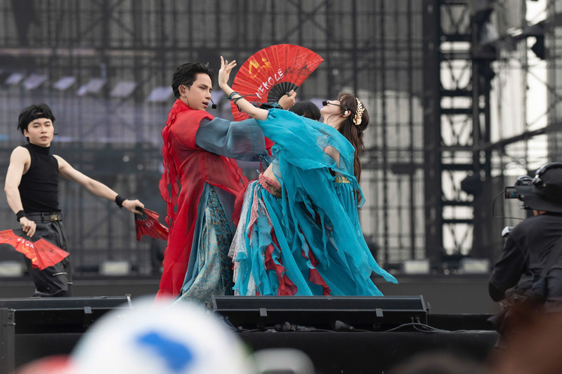 Loạt tiết mục mang đậm màu sắc dân gian như Giận mà thương, Lý ngựa ô, Inh lả ơi, đặc biệt là mashup Phong nữ – Cô đôi thượng ngàn với giọng hát văn của ca nương Kiều Anh, đã tạo nên khoảnh khắc linh thiêng. Khi Một vòng Việt Nam vang lên, hàng chục nghìn khán giả đồng loạt hòa giọng, tạo nên sự kết nối cộng đồng mạnh mẽ.